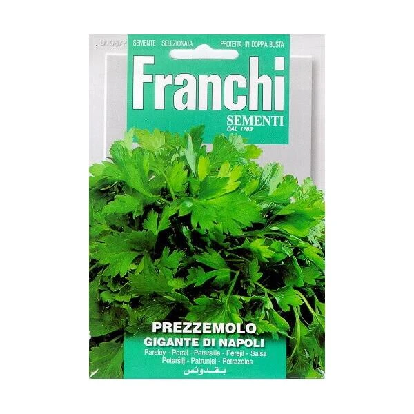 Peterselie is één van de meest populaire en veelzijdige kruiden, het kan worden geteeld in potten of in de tuin. Peterselie Gigante di Napoli geeft grote platte bladeren en komt oorspronkelijk uit Napels. Het is een plukgroente, ze groeien weer aan na het plukken.