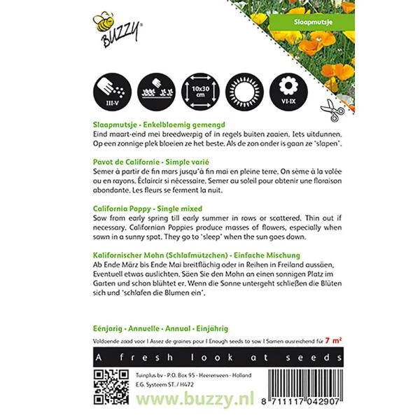 Op een zonnig plekje gezaaid zijn ze prachtig rijkbloeiend. Als de zon onder is gaan ze ‘slapen’.