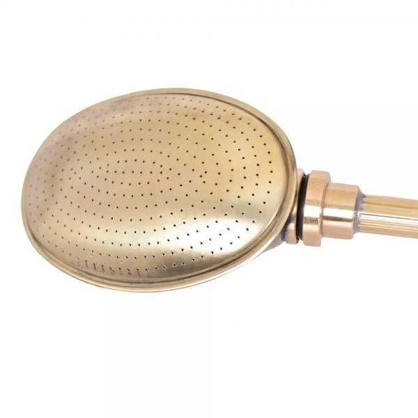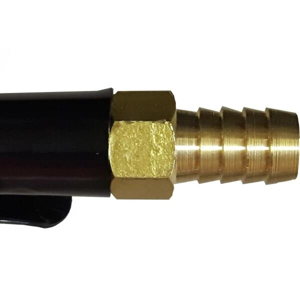 De lans is volledig uit geelkoper (messing) vervaardigd en is voorzien van een afschroefbare fijne broes. Deze broes is gemakkelijk rechtstreeks op een waterdarm aan te sluiten waarna je de waterdarm vast kan zetten met een spanband.