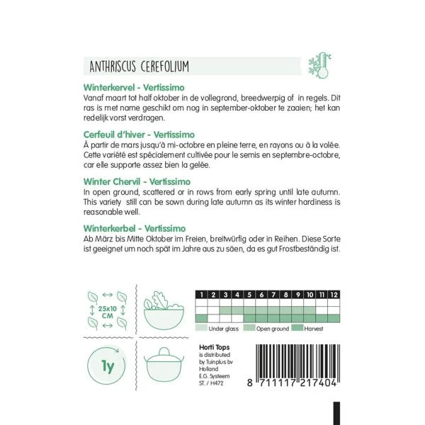 Winterkervel kan vanaf maart reeds worden uitgezaaid en dit tot diep in de herfst (september – oktober). Deze soort is redelijk bestand tegen de vorst.